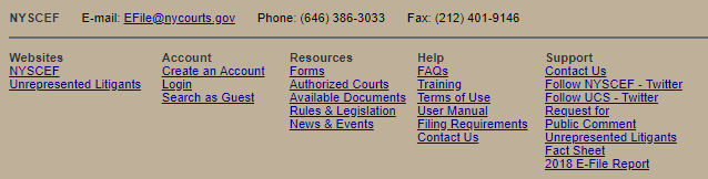 If you still have questions about NYSCEF that this manual has not answered, please contact the E-Filing Resource Center at (646)386-3033 or nyscef@nycourts.gov or by clicking on the "Contact Us" link on any NYSCEF screen.