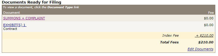 will also contain additional details such as the e-filing status of the case and any Assigned Judge: