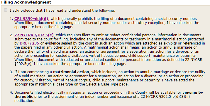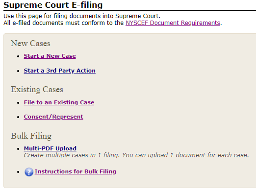 - NYSCEF Features