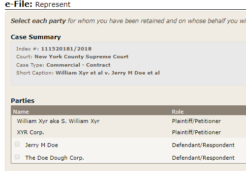 If a party has another name or status, the NYSCEF system provides you with the ability to enter it into your caption.