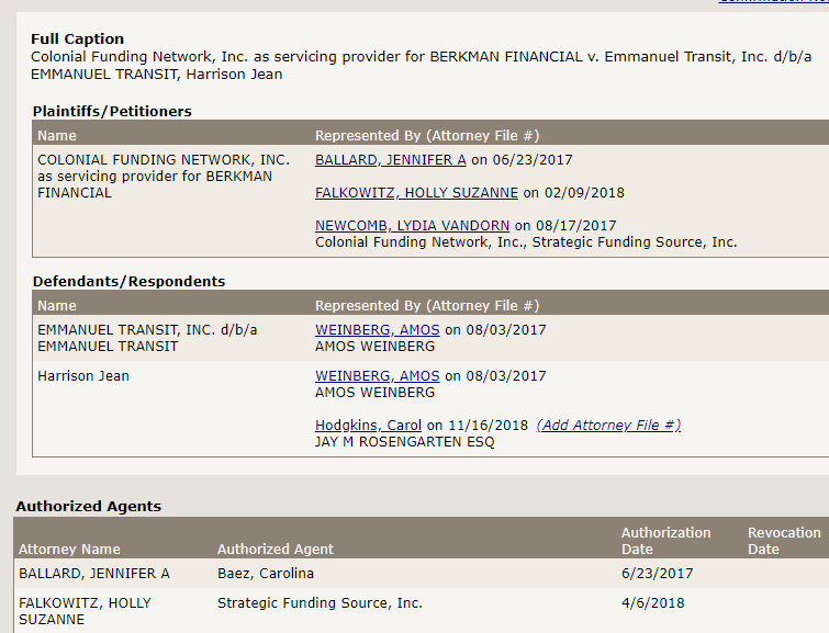 Clicking this tab allows you to view the case caption, the consents recorded for the parties, any non-participating parties, and any authorized agents: