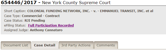 You will see a Case Summary, which contains basic case details such as the court, case type, index or claim number, and caption. It
