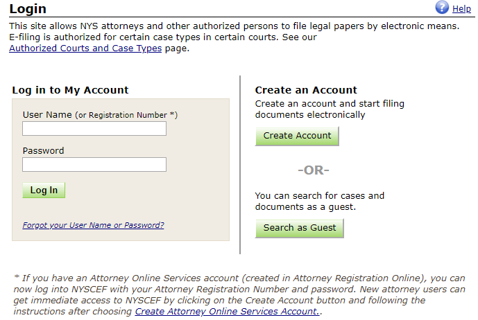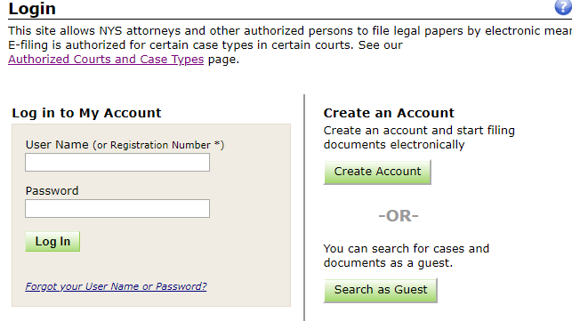 Once you have a valid NYSCEF User Name and Password for the system you