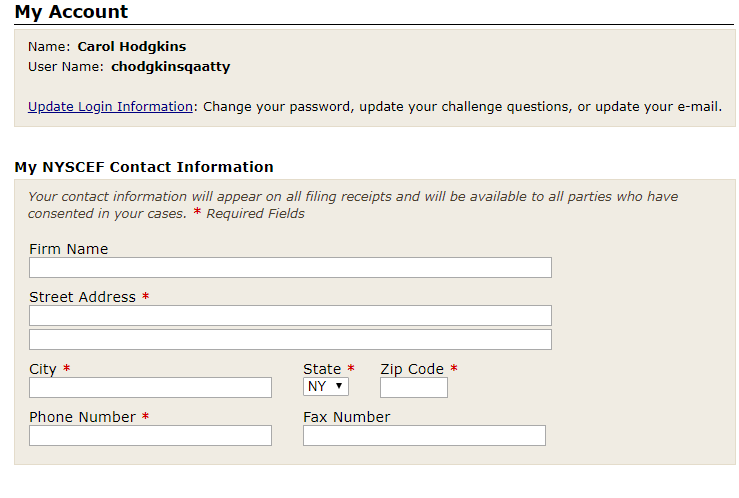 Users of the NYSCEF Live System have the ability and obligation to manage account information.